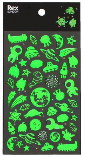 Diese Kollektion von 3D-Epoxid-Stickern mit coolem, im Dunkeln leuchtendem Weltraummotiv zeigt Astronauten, außerirdische Wesen, Raumschiffe, Planeten, Monde und Sterne auf einem einzigen Bogen. Die kleinen, glatten und angenehm anzufassenden Sticker eignen sich perfekt, um Grußkarten, Geschenkverpackungen, Bastelprojekte, Scrapbooks und vieles mehr farbenfroh und verspielt zu gestalten.