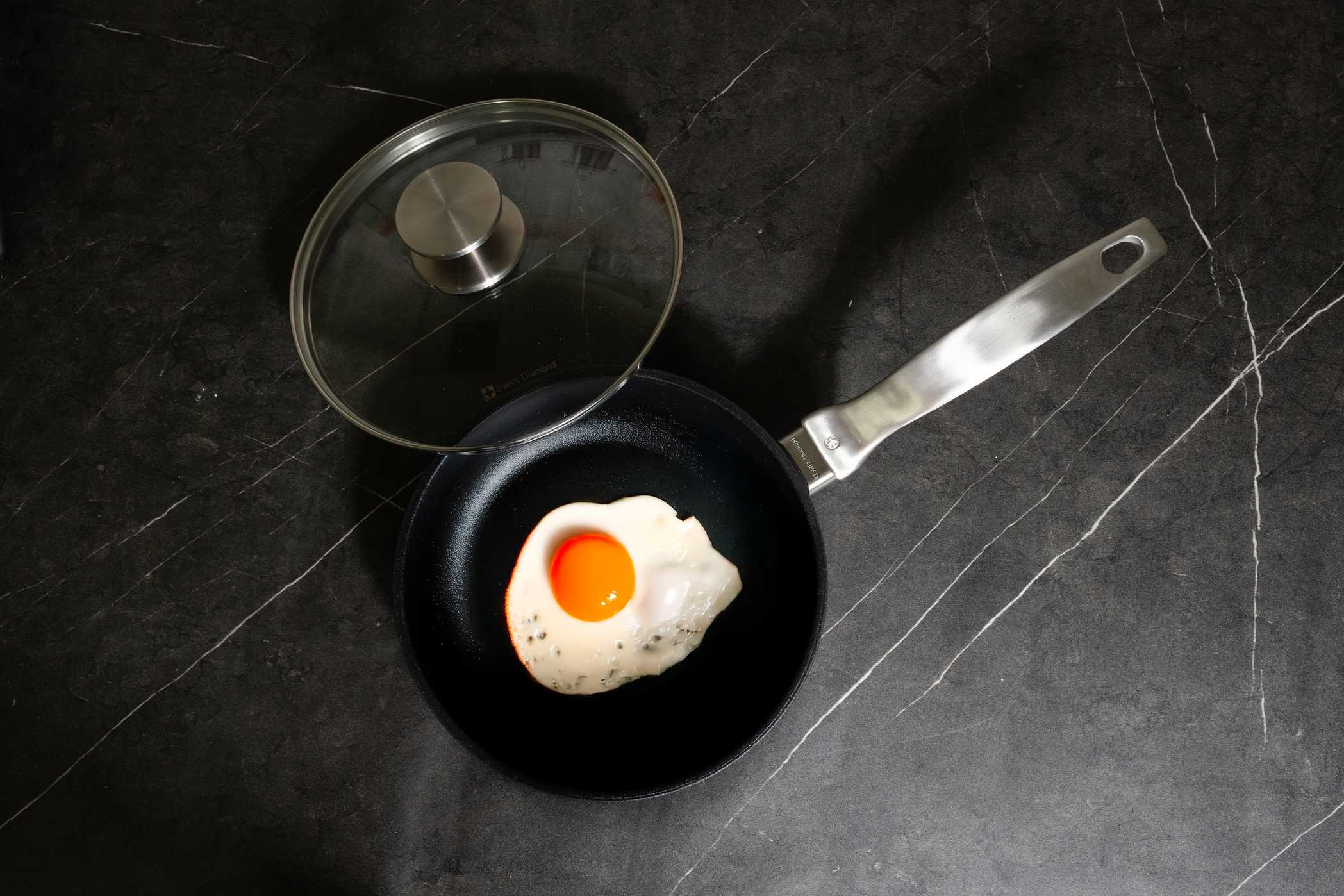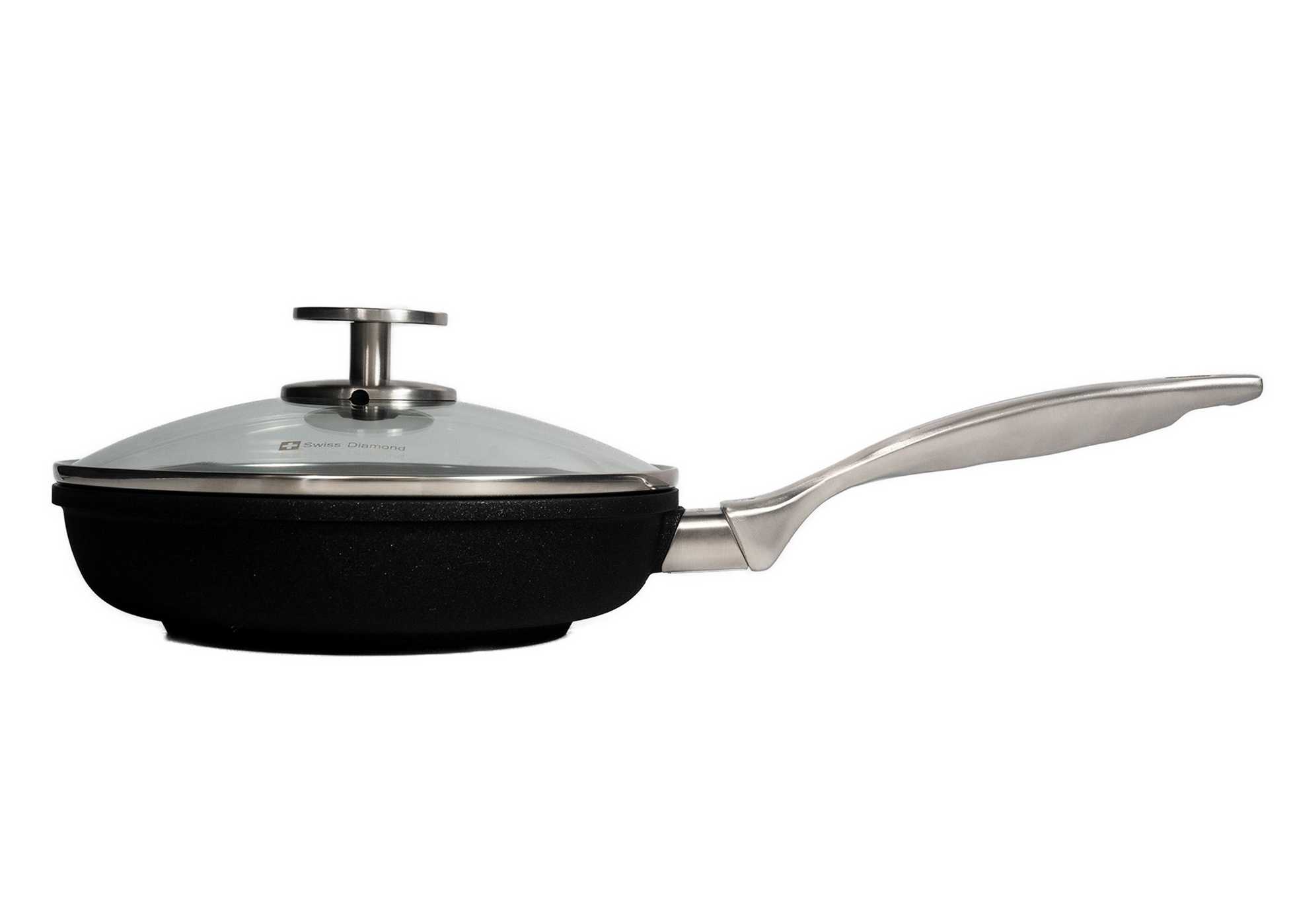 Die Swiss Diamond CXD Antihaft-Induktionspfanne vereint moderne Keramiktechnologie mit Schweizer Präzision für zuverlässige Leistung im Alltag. Hergestellt aus 100% recyceltem Aluminium in einem wasserkraftbetriebenen Werk, ist sie nachhaltig und langlebig. Die zweischichtige CXD-Beschichtung mit diamantverstärkter Oberfläche sorgt für müheloses Lösen der Speisen und einfache Reinigung – ganz ohne Öl. Frei von PFAS, PFOA, Blei und Cadmium steht sie für gesundes Kochen ohne Kompromisse. Der induktionsgeeignete Boden verteilt die Hitze gleichmäßig, der formstabile Guss verhindert Verformungen, und der ofenfeste Edelstahlgriff liegt ergonomisch in der Hand. Eine vielseitige Pfanne für jeden Tag – leistungsstark, pflegeleicht und zukunftssicher.