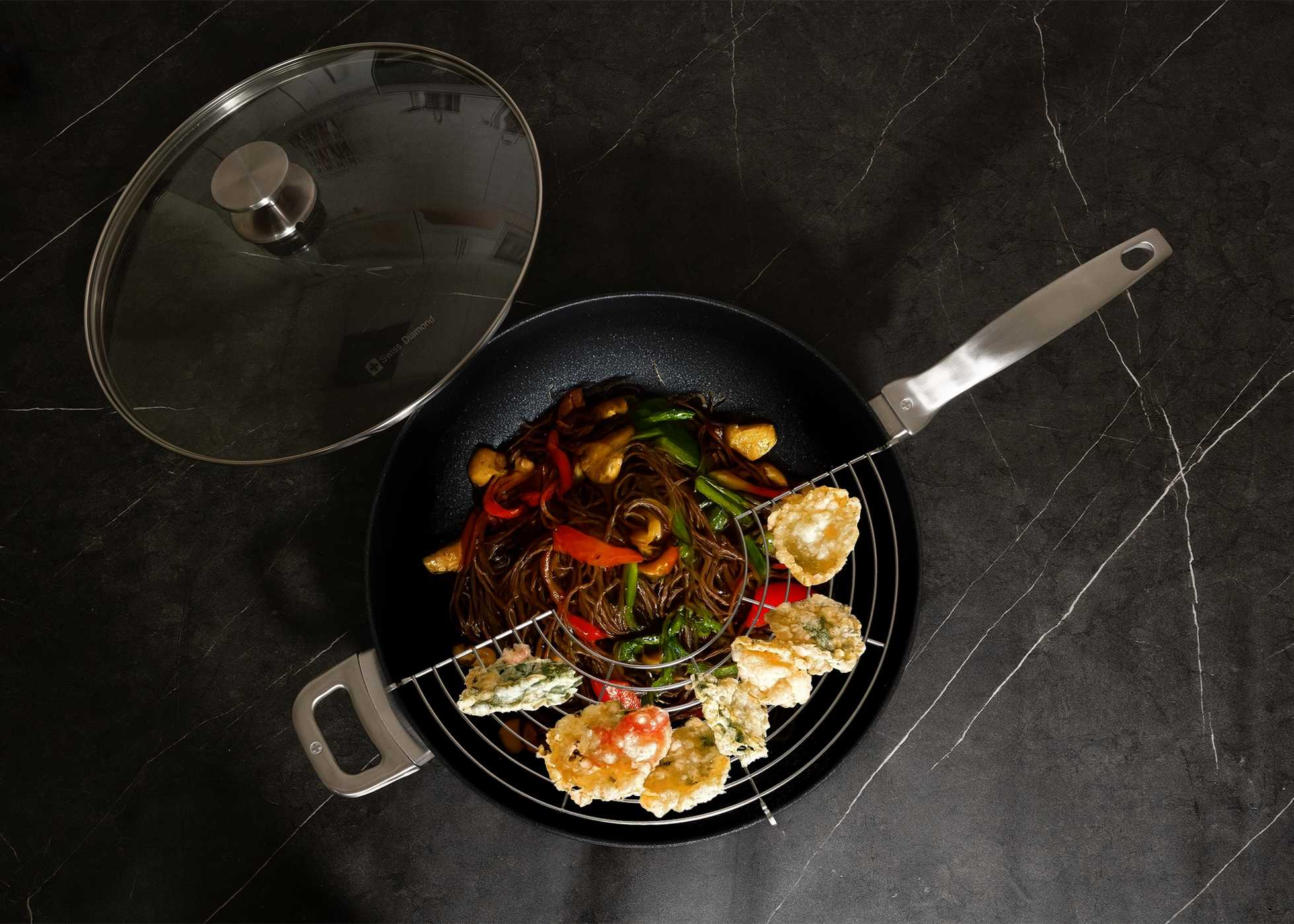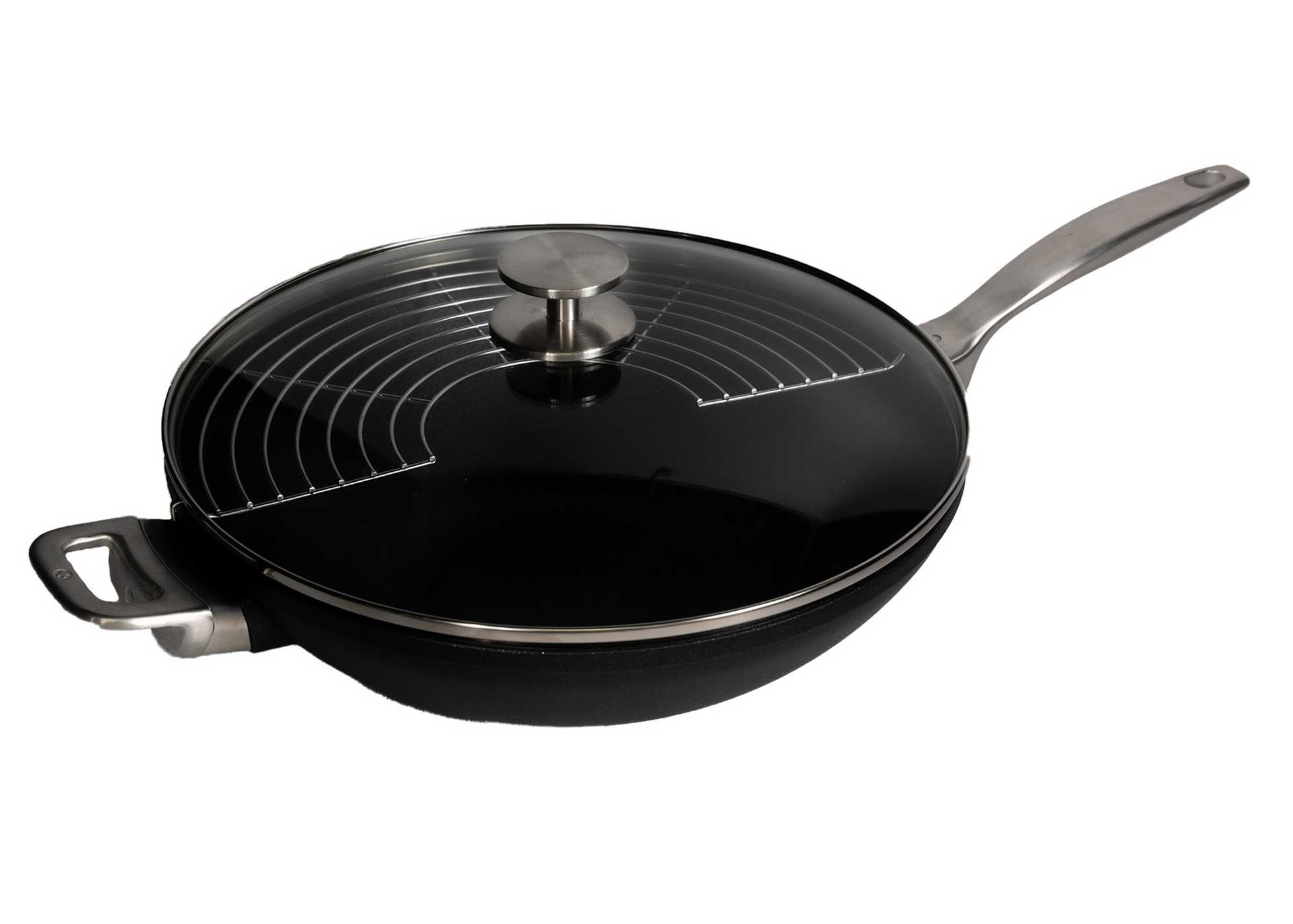 Die Kunst des Wok-Gerichts gelingt mit einer Kombination aus traditioneller Form und moderner Funktionalität. Der 32cm große Wok mit 5 Litern Fassungsvermögen eignet sich ideal für intensives Aroma und schnelles, nährstoffschonendes Kochen. Gefertigt in der Schweiz aus 100 % recyceltem Aluminium, bietet er dank CXD-Keramik-Antihaftbeschichtung besondere Langlebigkeit und einfaches Lösen der Speisen. Abgerundete Seiten und gleichmäßige Hitzeverteilung ermöglichen professionelles Sautieren, Anbraten und Wenden. Der hitzebeständige Glasdeckel hält Wärme und Feuchtigkeit im Inneren, während der integrierte Edelstahlrost das Dämpfen oder Ruhen von Speisen erleichtert.