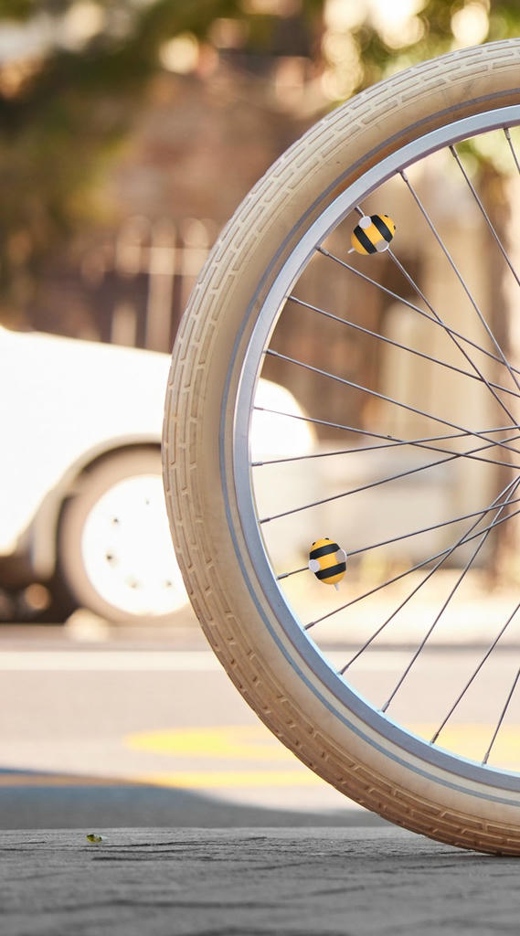 Die Bienen Fahrrad-Speichenclips bringen gute Laune auf jedes Fahrrad. Die kleinen Clips lassen sich einfach an den Speichen befestigen und sorgen beim Fahren für einen verspielten Blickfang. Das fröhliche Bienen-Design macht Kinderfahrräder, Laufräder oder auch Erwachsenenräder zu etwas Besonderem und sind Ideal als kleines Geschenk oder zur individuellen Gestaltung des eigenen Fahrrads.