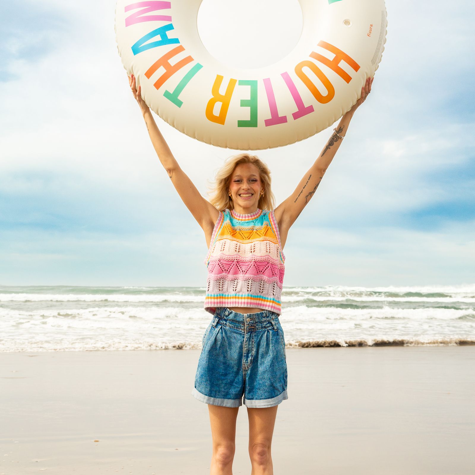 Mit einem Durchmesser von 115cm eignet sich dieser riesige Schwimmring perfekt zum Entspannen, Sonnenbaden und Geniessen des Wassers.