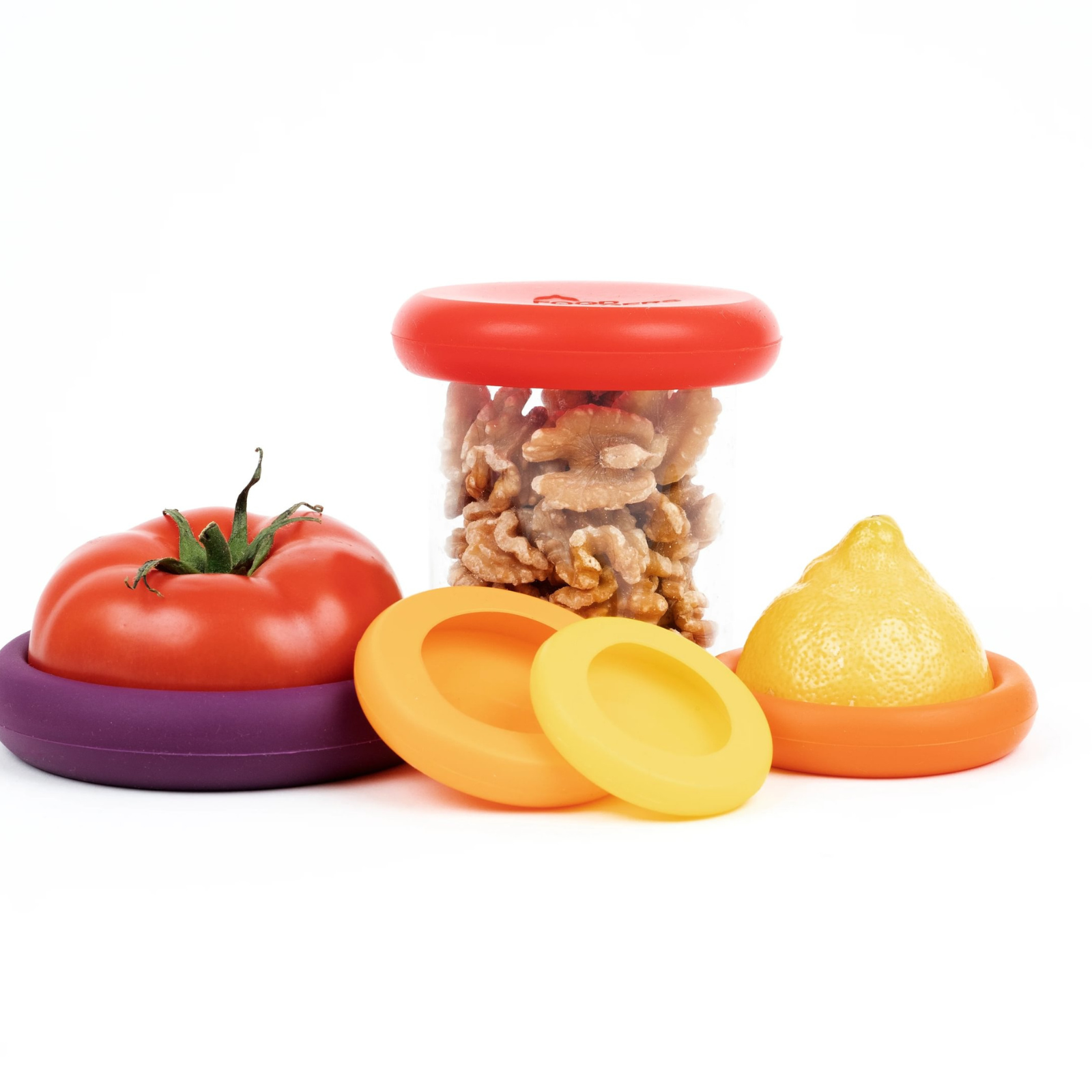 Food Huggers helfen dabei, Obst und Gemüse frisch zu halten. Das 5er-Set beinhaltet alle 5 Größen von Food Huggers. Sie eignen sich auch hervorragend zum Abdecken von Gläsern, geöffneten Dosen und anderen kleinen Behältern. Sie lassen sich kompakt zusammenstecken und ermöglichen eine platzsparende Aufbewahrung und Organisation.