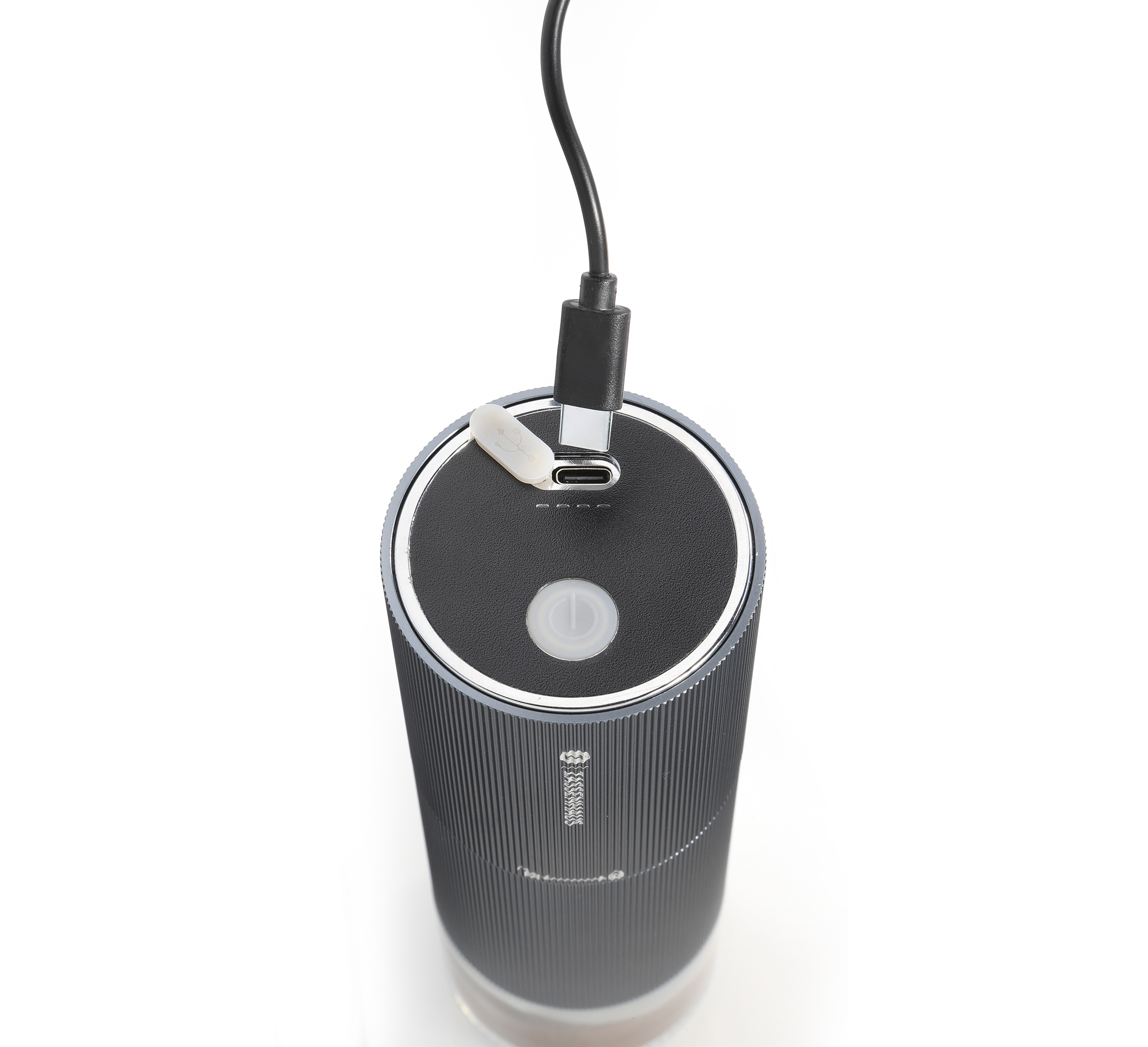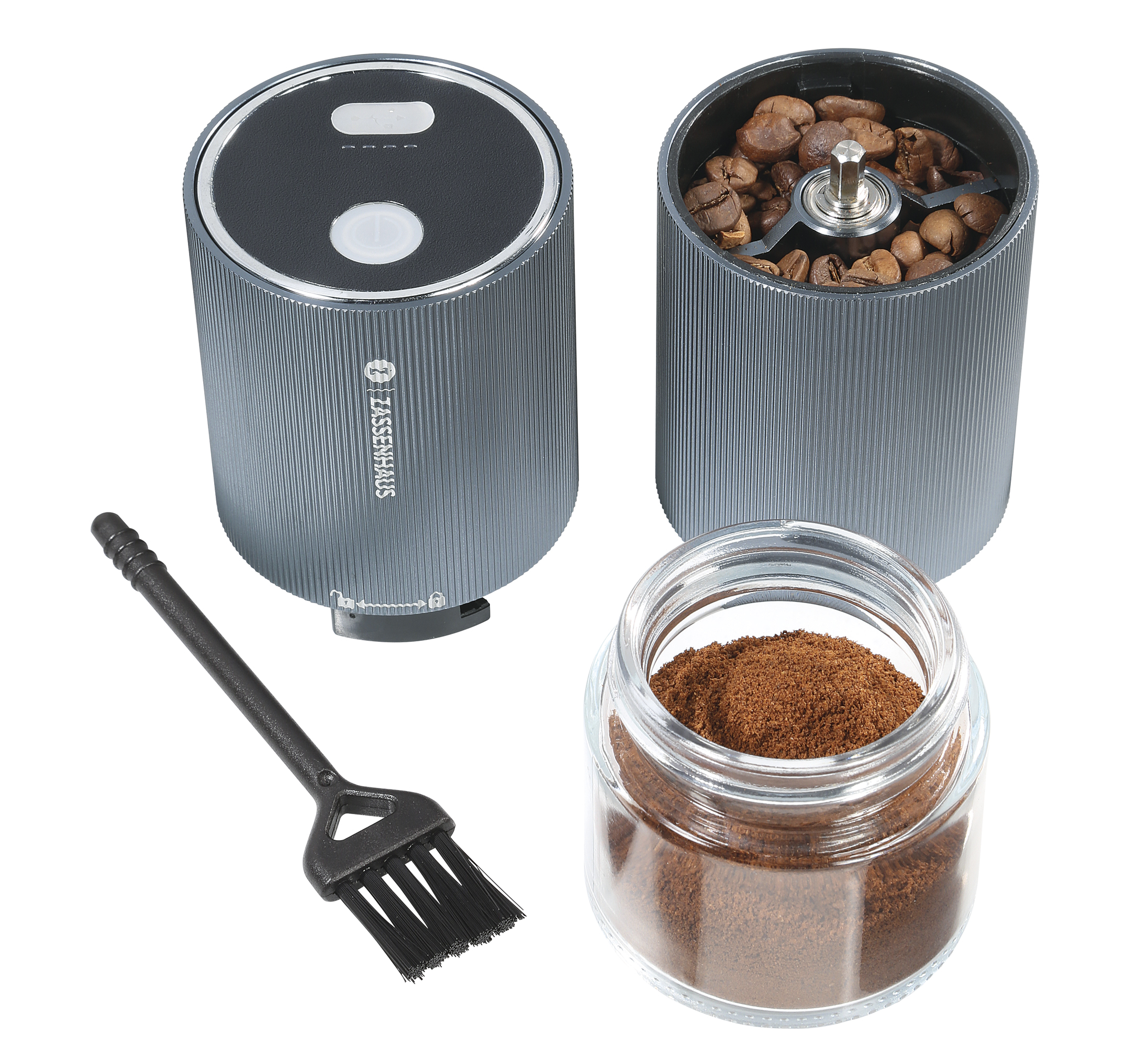 So geht moderner Kaffee-Genuss. Die Kaffee-/Espressomühle MASTER USB von ZASSENHAUS funktioniert ganz bequem auf Knopfdruck und unabhängig von der Stromversorgung. Sie ist akkubetrieben und wird mit dem beiliegenden USB-Kabel aufgeladen. Dank der Ladestatus-Anzeige behalten Sie dabei immer den Überblick. Bei der Ausstattung der hochwertigen Mühle gelten die traditionell hohen Qualitätsansprüche von ZASSENHAUS. So ist das 2-fach kugelgelagerte Präzisionsmahlwerk aus CNC-gefrästem Edelstahl extrem robust und langlebig. Der Mahlgrad ist mit Hilfe eines Klick-Mechanismus stufenlos justierbar – je nach Einstellung von espressofein bis filteroptimal. Das Aroma der Kaffeebohnen bleibt voll erhalten. Nach dem Mahlen landet das Pulver in dem praktischen Auffangbehälter.