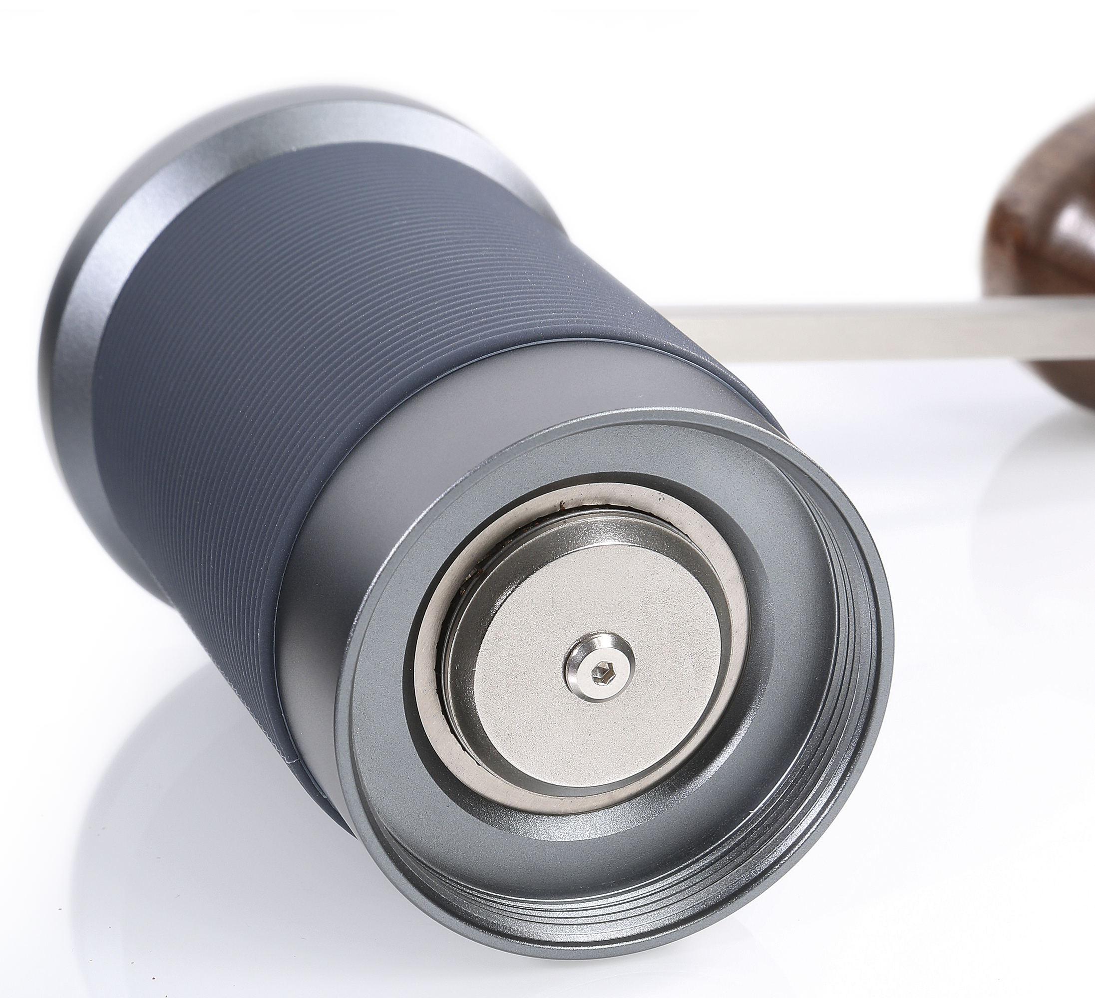 Probieren geht über Studieren. Die Kaffee-/Espressomühle MASTER von ZASSENHAUS lädt Sie ein, Kaffee-Genuss in einer neuen Dimension zu probieren. Das 2-stufige Präzisionsmahlwerk aus CNC-gefrästem Edelstahl arbeitet extrem präzise; der Mahlgrad ist mit Hilfe eines Klick-Mechanismus oberhalb der Kurbel stufenlos justierbar – je nach Einstellung von espressofein bis filteroptimal. Dank der doppelt kugellager-geführten Spindel geht Ihnen das Mahlen besonders leicht von der Hand. Der Schutzdeckel aus Silikon sorgt dafür, dass während des Mahlens keine Kaffeebohnen herausspringen und schützt beim Aufbewahren gegen Staub. Dank der strukturierten Silikon-Manschette haben Sie die Kaffee-/Espressomühle aus robustem, CNC-gefrästen Aluminium jederzeit sicher im Griff.