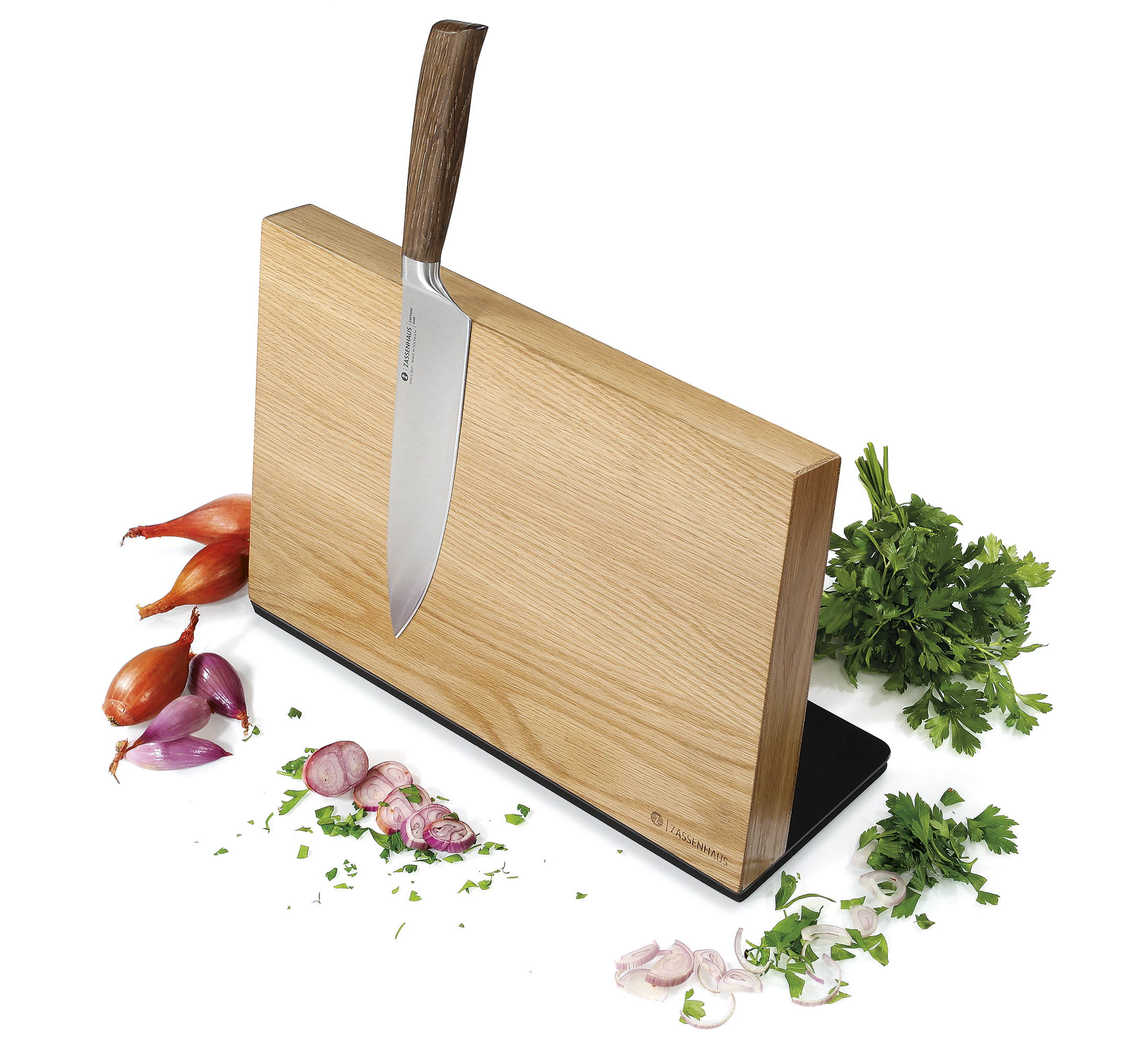 Mit dem eleganten Magnet-Messerblock von ZASSENHAUS werden Messer nicht nur sicher verwahrt, sondern kommen auch stilvoll zur Geltung. Innenliegende, starke Magnetstreifen auf jeder Seite halten je nach Größe bis zu 8 Messer sicher fest. So ist für jeden Zweck das richtige Messer immer und sofort griffbereit.