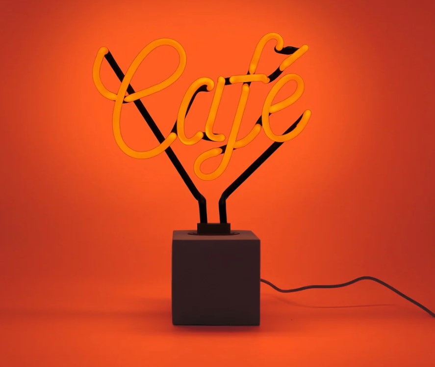 Diese Tisch-Neonlampe wird von Hand aus echtem Neonglas gefertigt und auf einem stilvollen Betonsockel montiert. Lustige und einzigartige Beleuchtung, die für einen echten Retro-Neon-Glanz sorgt, den Sie einfach nicht übertreffen können.