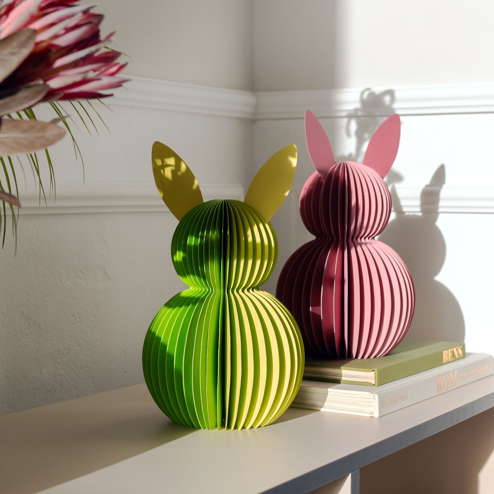 Hopp, hopp aufgefaltet – fertig ist die Osterdekoration. Das zweifarbige Osterhasen-Pärchen ist ein richtiger Hingucker: Stattliche 30 cm gross, zeigt es direkt, wie der Hase in Sachen Osterschmuck läuft. Dank integrierter Magnete sind sie im Nu aufgefaltet und nach den Feiertagen genauso schnell wieder platzsparend verstaut.