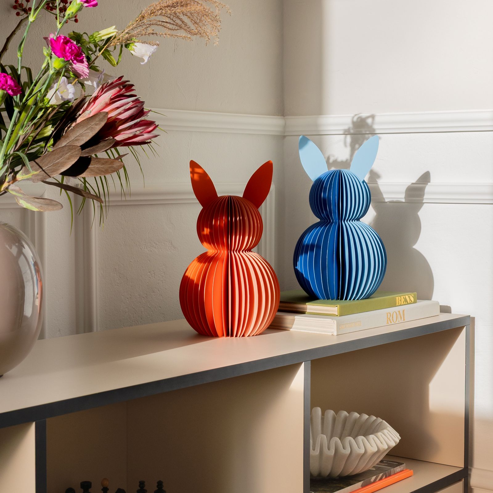 Hopp, hopp aufgefaltet – fertig ist die Osterdekoration. Das zweifarbige Osterhasen-Pärchen ist ein richtiger Hingucker: Stattliche 30 cm gross, zeigt es direkt, wie der Hase in Sachen Osterschmuck läuft. Dank integrierter Magnete sind sie im Nu aufgefaltet und nach den Feiertagen genauso schnell wieder platzsparend verstaut.