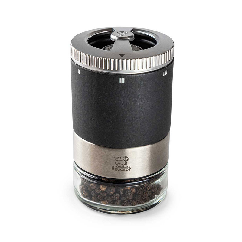 Die Mühle Maestro ist das Herzstück der von Peugeot entworfenen Pfefferbar. Sie besteht aus einem Holzkörper und einem Glasbehälter, der abschraubbar und leicht zu befüllen ist. Ausgestattet mit dem patentierten u’Select-System, erleichtert sie die genaue Einstellung des Mahlgrads von fein bis grob. Geliefert mit schwarzem Kampot-Pfeffer mit unvergleichlich fruchtigen Noten, dessen Aromen im Frischebeutel erhalten bleiben. Passende Leerbehälter sind separat erhältlich. So kann die Mühle um zahlreiche Behälter mit verschiedenen Pfeffersorten ergänzt werden und begleitet Liebhaber auf ihrer Pfeffer-Weltreise.