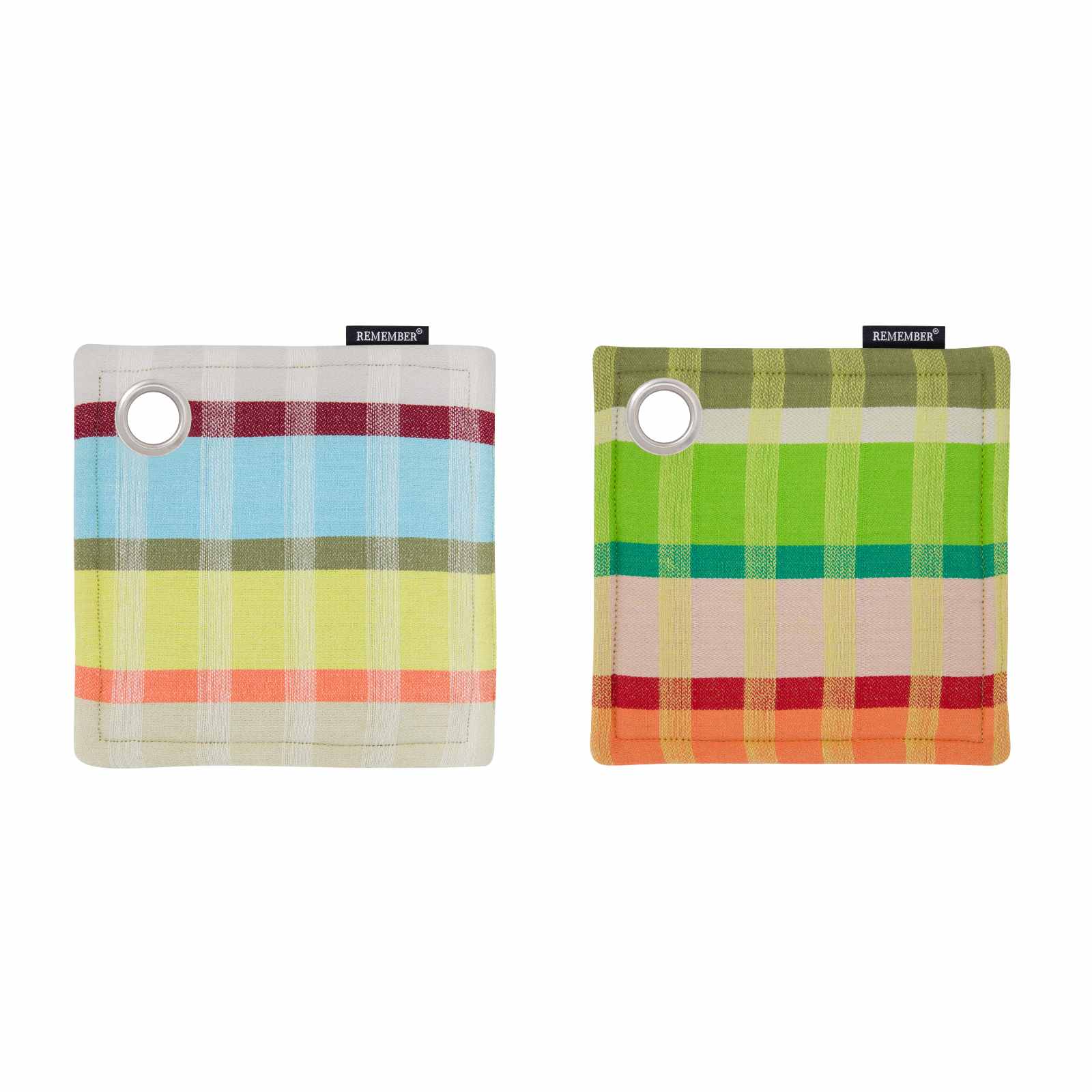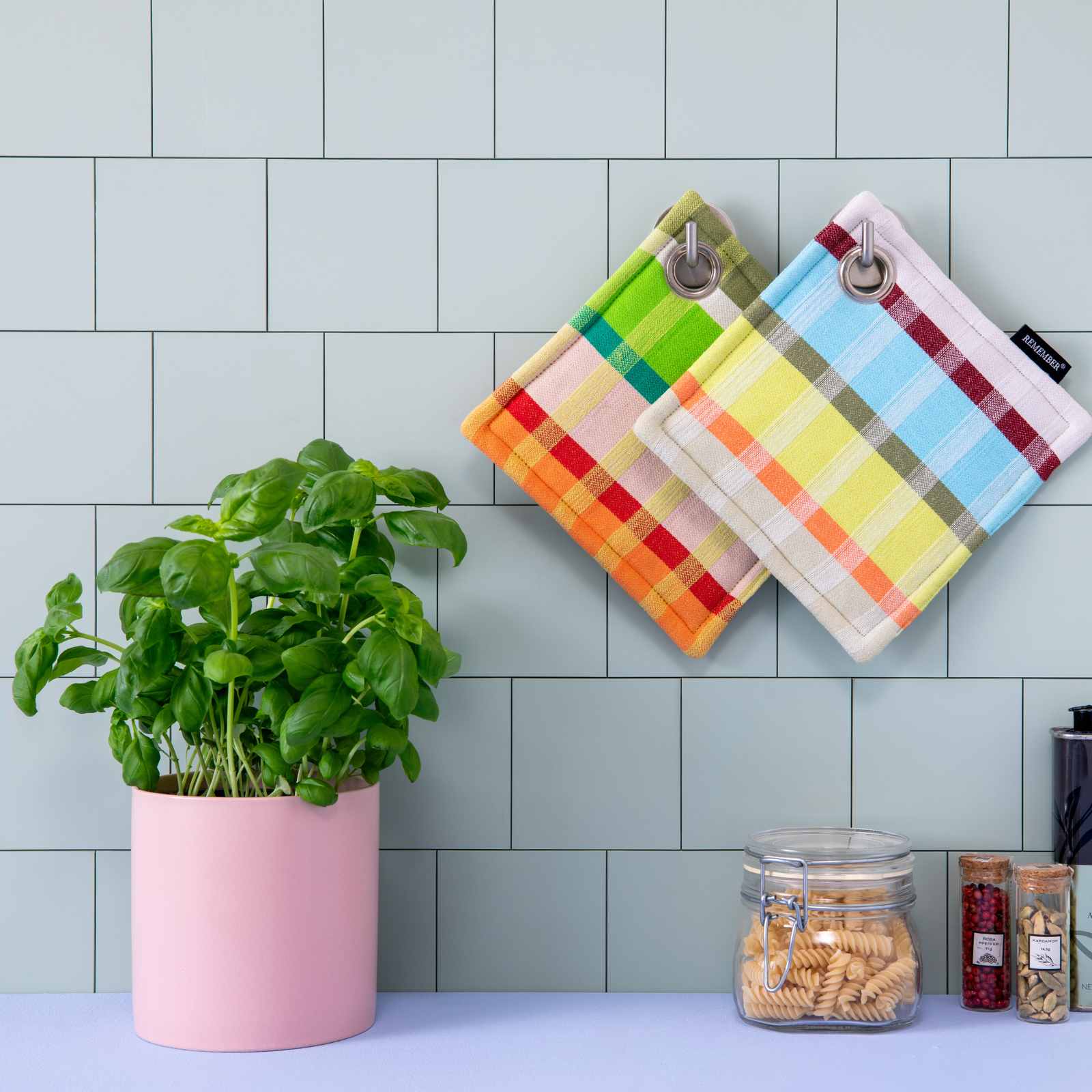 Vorsicht, heiß! Diese kleinen, neuen Küchenhelfer sind aus hochwertiger Baumwolle gefertigt. Jedes Set besteht aus zwei Topflappen in unterschiedlichen aufeinander abgestimmten Designs. Diese Topflappen werden zu einem charmanten Blickfang für jede Küche.